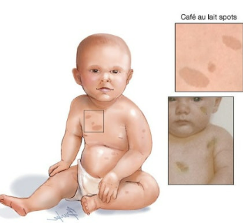 - 카페오레 반점: 피부에 나타나는 옅은 갈색의 반점으로, 나이가 들면서 크기가 커질 수 있어요. 여섯 개 이상 나타나면 신경섬유종증을 의심해야 해요.